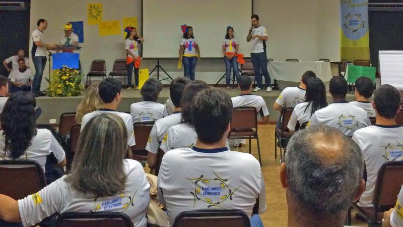 Os participantes devem criar uma peça de teatro, o texto, o cenário, o figurino e fazer a apresentação em dois atos. Cada ato corresponde a momentos distintos vividos na empresa antes e depois de mudanças que acontecerão. Após o desenvolvimento da peça, os próprios participantes devem encená-la disseminando a informação.
